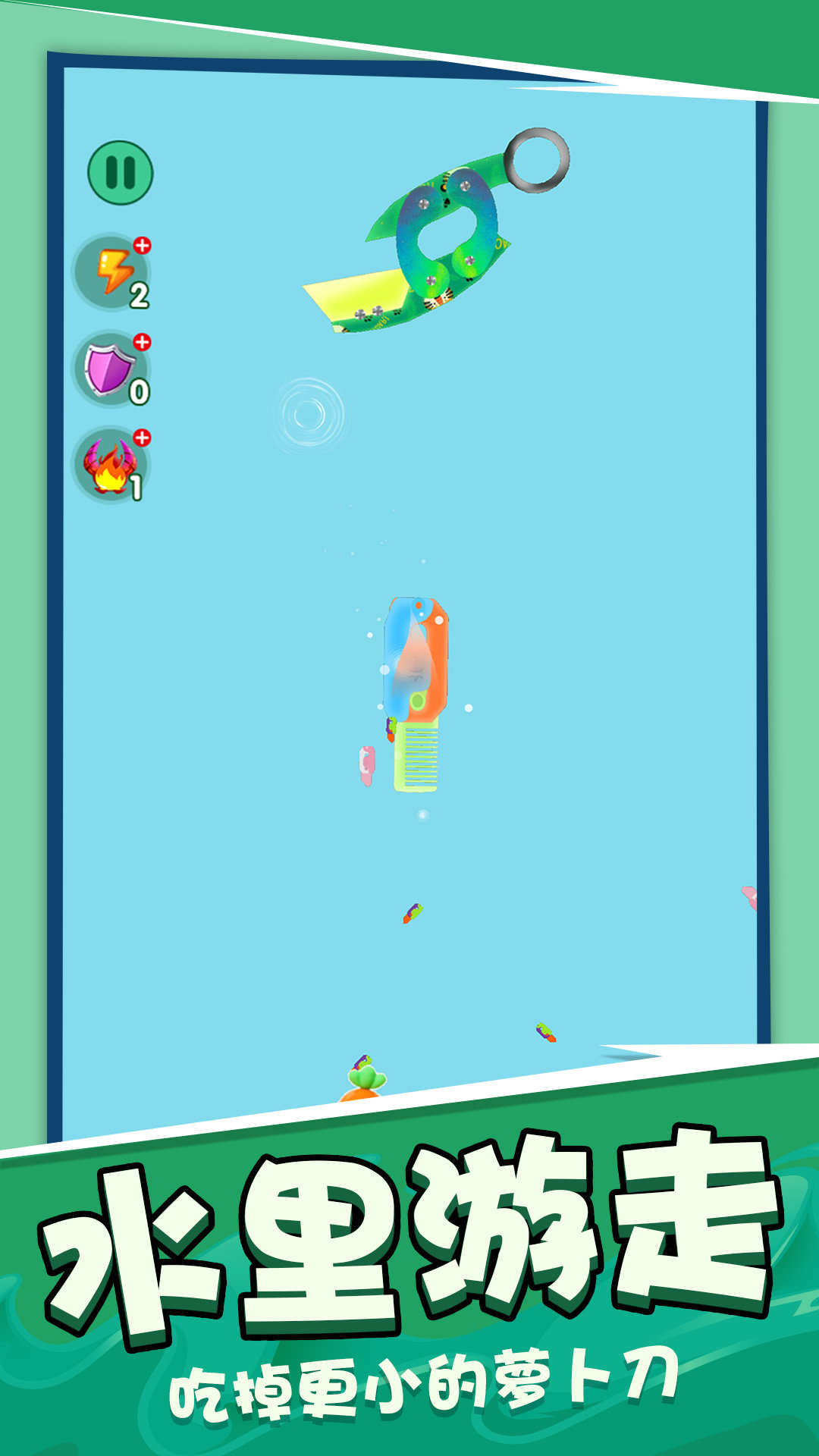 萝卜刀解压模拟是一款模拟解压的游戏,萝卜刀作为一个外形可爱的武器,现在很受人们的喜爱。这个游戏就是以萝卜刀为原型,带来了合成吞噬的玩法。合成水果或者是化身鲨鱼,吃掉其他弱小的鱼类。在这个游戏里面释放压力和不满,还有多种道具可以使用。