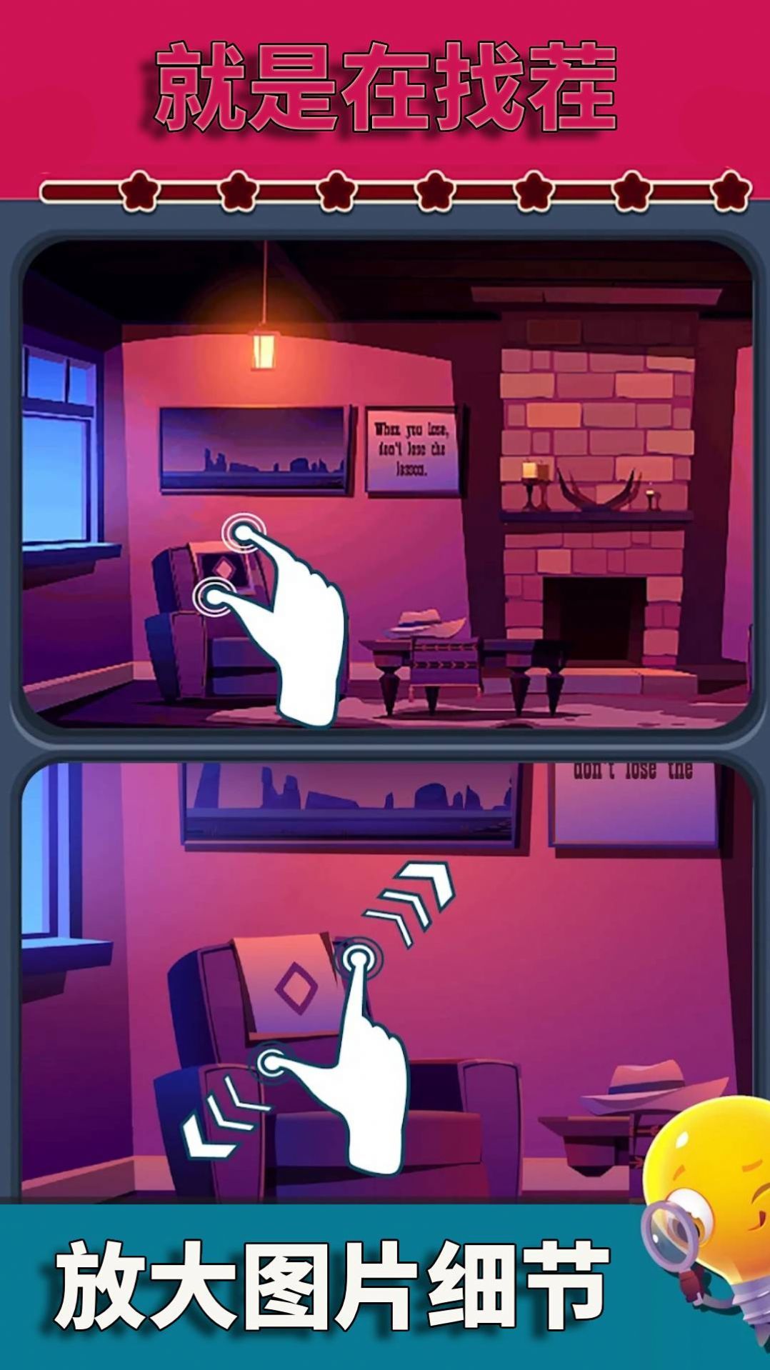 就是在找茬是一款游戏简单的休闲益智游戏。游戏上大家玩家需要在指定的时间范围内找到两个相同图案之间的关联。游戏玩法简单易学,随时能够满足玩家的需求。随着等级的提高,游戏上难度会逐渐增加,考验玩家的反应和观察能力。同时,它还可以放松身心,享受游戏上的各种乐趣,感兴趣就来下载体验一下试试吧!