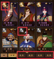 游戏里,武将品级分为四品,由低到高分别为:良将、名将、盖世、传奇。武将品级非常直观的显示在武将的左上角(如图所示)