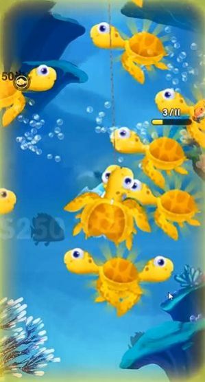3、在深海垂钓,可以从捕获小鱼小虾开始,逐步挑战更大的鱼类,甚至有机会钓到鲸鱼,通过解锁更多鱼类品种来赚取金币。