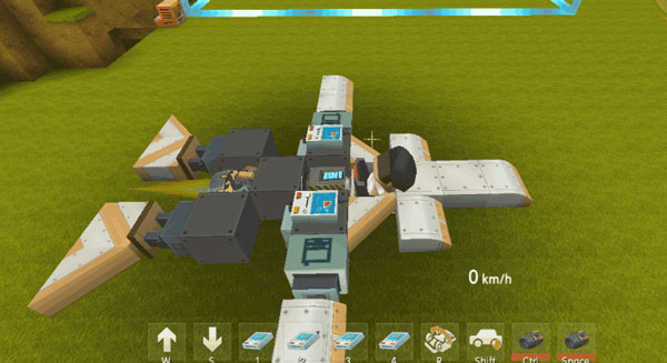 14、如此,一架简易的飞机便制作完成啦!生成载具后不妨尝试一下,先坐上飞机,接着按下推进按键:
