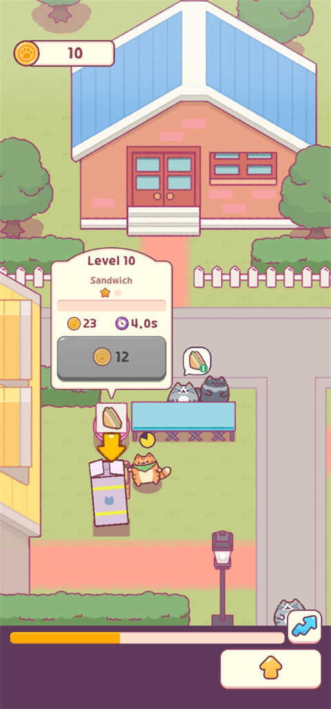 点击下方黄色箭头,即可获得一只猫咪,它将协助你制作三明治。