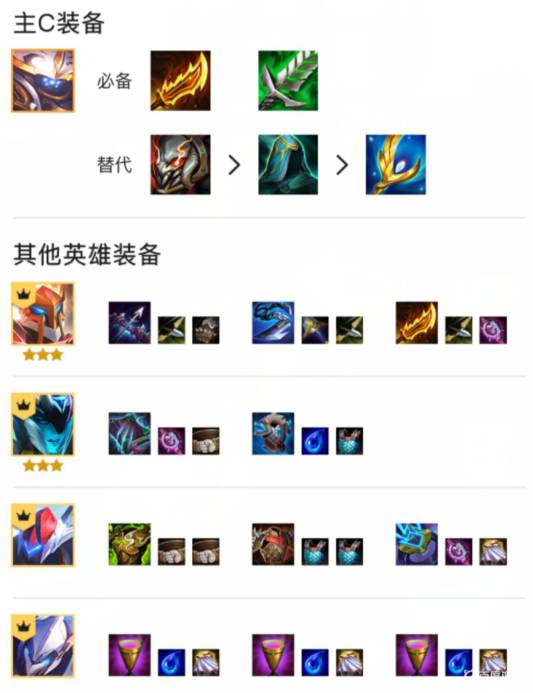 3. 装备建议:主输出角色必备羊刀和饮血剑,第三件首选泰坦,若没有可用水银或大天使替代;瑟庄妮适合鬼书和圣盾使的誓约;蕾欧娜推荐狂徒、反甲和离子火花;瑟提则适合三圣杯。