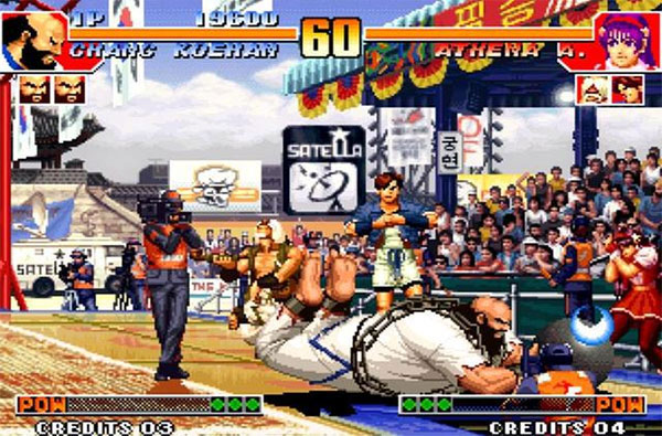五、有时候蹲攻击必须站防:当对方处在浮空状态时,比如雅典娜和不知火舞在版边闪避的瞬间出一个包含三角跳指令的招数,就会处在浮空状态,脚离开地面,在击打对手时双方都不会后退。这种情况下蹲重脚必须站防。