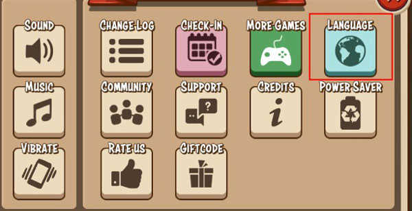 3、接着回到主界面点击右上角的“齿轮”设置,选择带有地球的“语言”窗口,如下图所示。