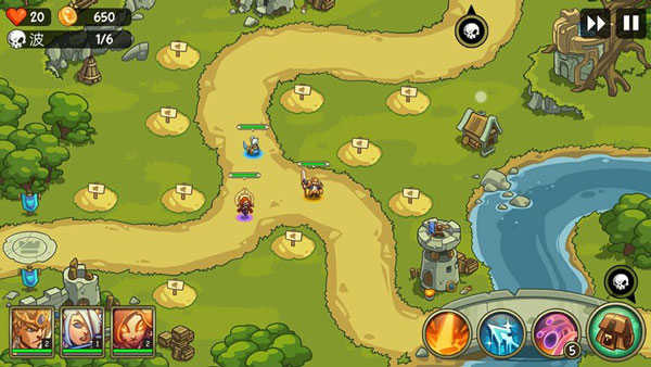 进入战斗后,我们三位英雄身旁的土包,便是建造防御塔的地点。只需点击土包,再选择防御塔类型并点击对勾,就能成功创建。要是金币充足,便可升级防御塔,等级越高,攻击伤害越大。若金币有限,那就优先升级位于路口前端、最先与敌人交锋的防御塔。