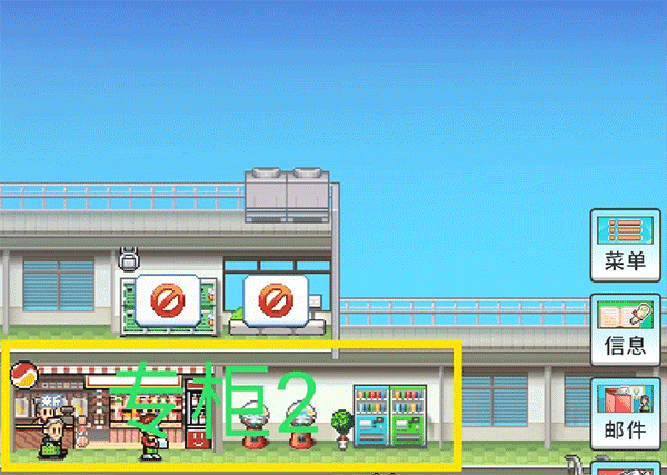 ① 这游戏刚开局我没有按照提示来走我是先把二楼腾空然后建造第一个专柜, 这个专柜从左到右分别是花店、面包店、零食店