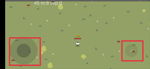 3、进入游戏后,玩家通过左边轮盘控制角色的移动,右边按钮发射子弹