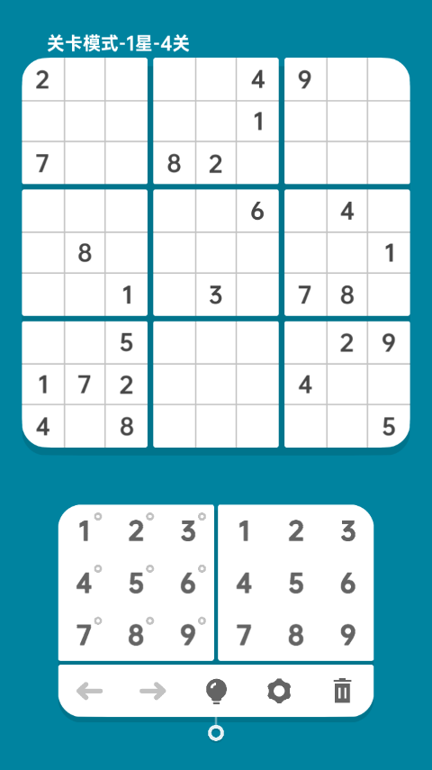 数独sodocool,这是一款新颖的数独益智手游。其画面简约又清晰,操作逻辑十分贴心,既支持长按数字盘,也保留了单击传统按键的方式,充分照顾不同玩家的操作习惯。在游戏里,玩家要依据9x9盘面上已有的数字,通过推理来填出所有剩余空格的数字,并且要确保每行、每列以及每个3x3的宫格内,数字1 - 9都齐全且不重复。 这款游戏还设置了多种难度级别。1到2星难度对于刚接触数独的入门玩家来说再合适不过;3星及以上难度,则更适合那些有一定经验的玩家;而5星难度,无疑是对超级高手发起的挑战。 不仅如此,游戏还配备了标记、实时存档、高亮显示等一系列实用的小工具。感兴趣的朋友们,完全可以根据自身水平,挑选相应难度下载体验一番,相信它会为你带来愉悦的游戏感受。