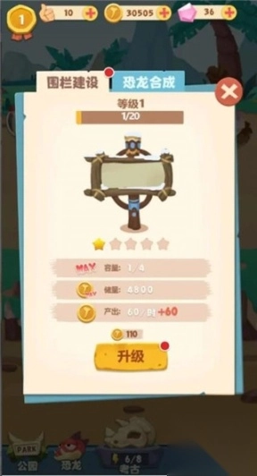 3、过程中围栏建设的等级越高能获得的恐龙就越多,