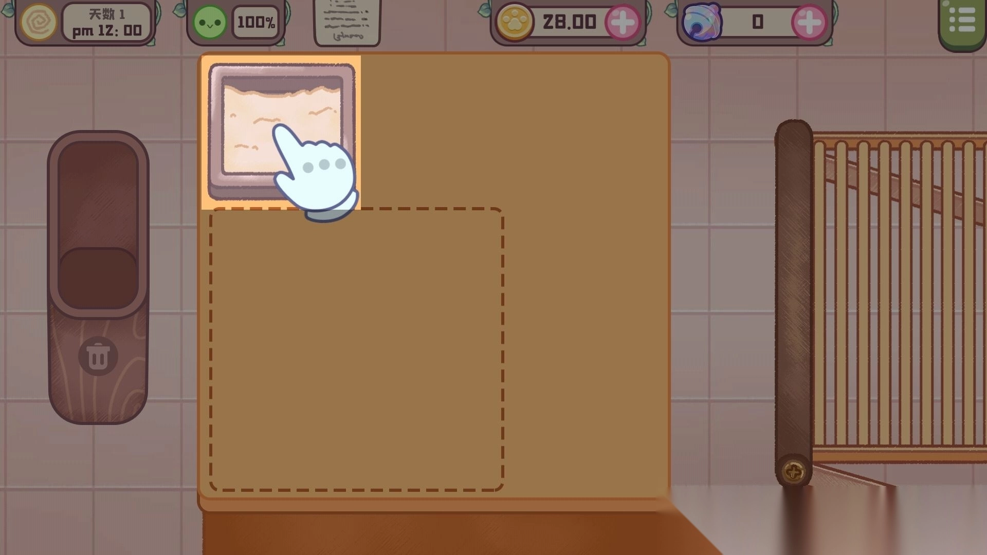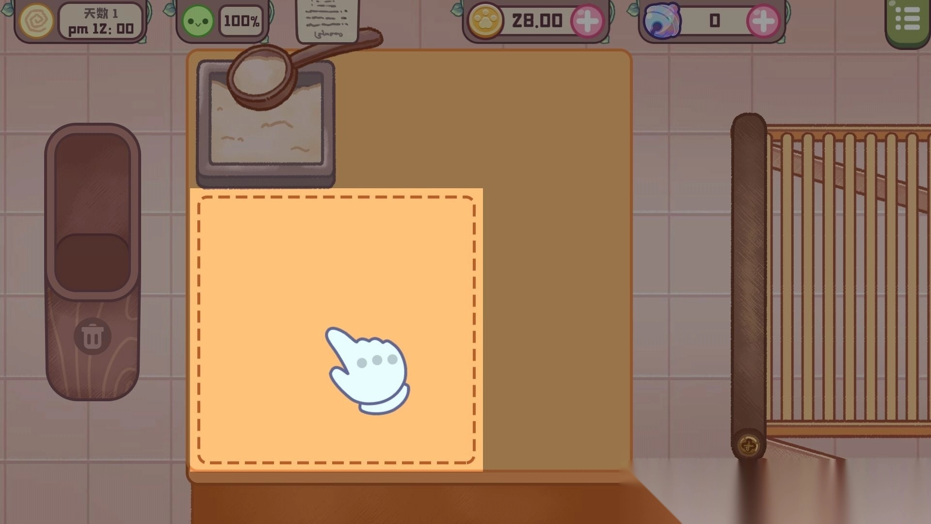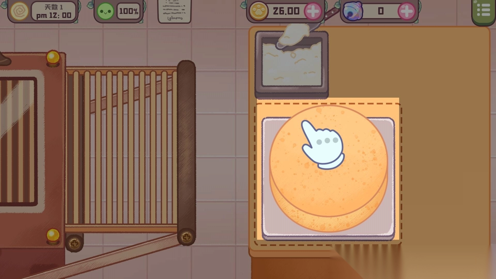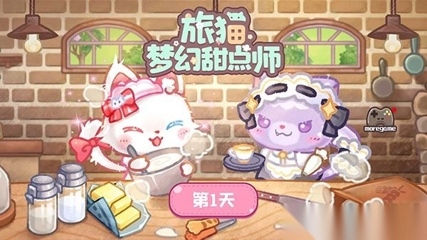 遇到雨天,店里生意清淡,猫咪厨师就惬意地窝在厨房,尝试着把彩虹糖霜淋在猫爪马卡龙上。就算制作失败也没关系,因为总有贪嘴的麻雀伙计会帮忙解决这些“失败作品”。1. 开启旅猫甜品店游戏的官方版本,进入到游戏的主界面,接着点击下方的【第一天】。