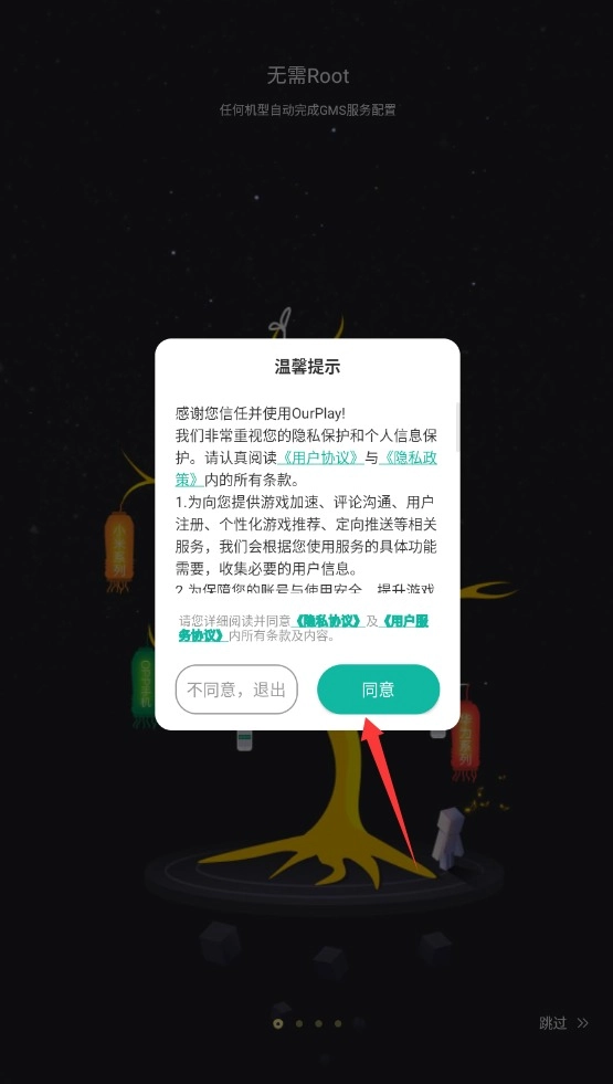 1、安装完成后首次启动应用,仔细阅读用户协议内容后点击底部同意按钮进入主界面。