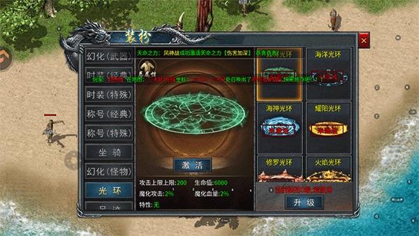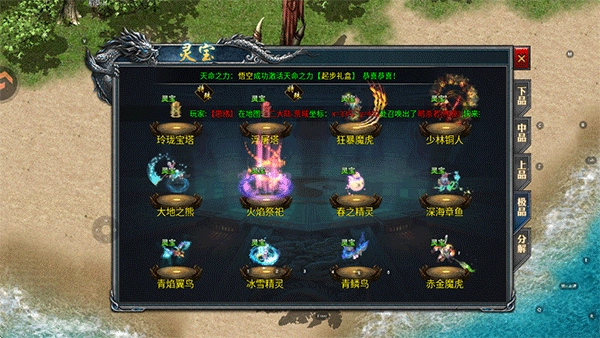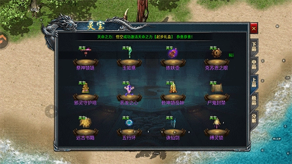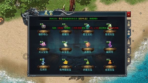 开启“天庭之心”活动,可获取稀有资源,同时进行装备优化。