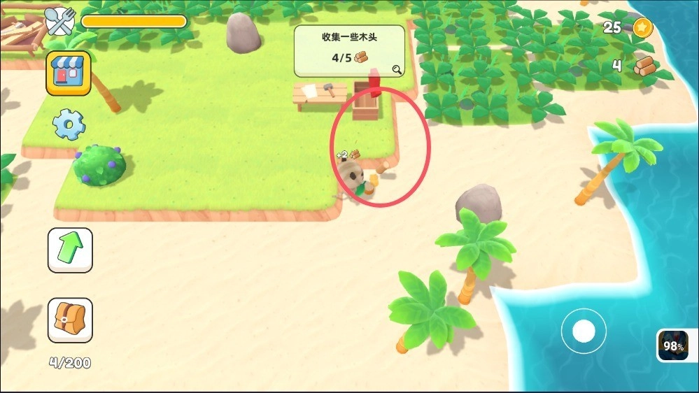 3、除木材外,石头等资源也是必需的,这些资源可在岛上不同区域寻得。