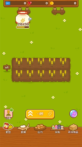 1、原料生产(第一张),先点麦田“一键”收小麦,罐子攒面粉;别囤货,够做3个面包就去厨房,快速回本。