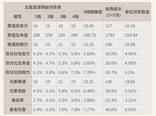 注:原神圣遗物的主副属性词条,均是四舍五入后的数值,并非精准值。