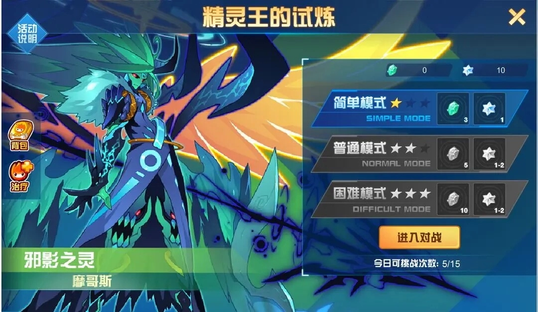 “精灵王的试炼”是游戏里重要的PVE玩法,各精灵王的试炼分为简单、中等、困难三个难度,分别掉落3、5、10个晶石;每周每个精灵王都会在指定日期掉落UP,各难度晶石掉落增加至8、10、15个。