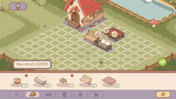 4、完成教程后,点击右下角的锤子按钮,即可装饰自己的家园。点击物品,就能将其放置到对应位置。