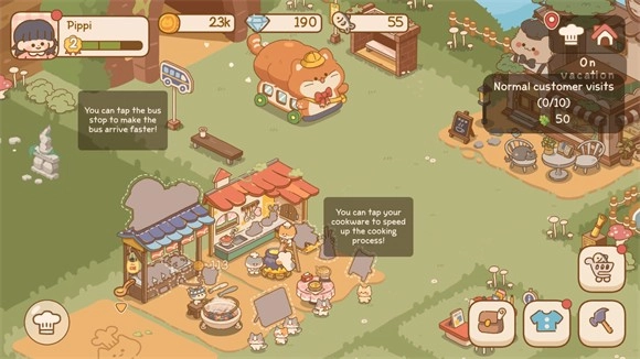 8、不断提升角色等级解锁新的餐厅,自由经营来体验最治愈的游玩过程。