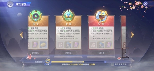 3. 唐门荣誉等级的每周限购体力盒子,大匠是可以每周购买三个的,虽然游戏中没有明确指出。