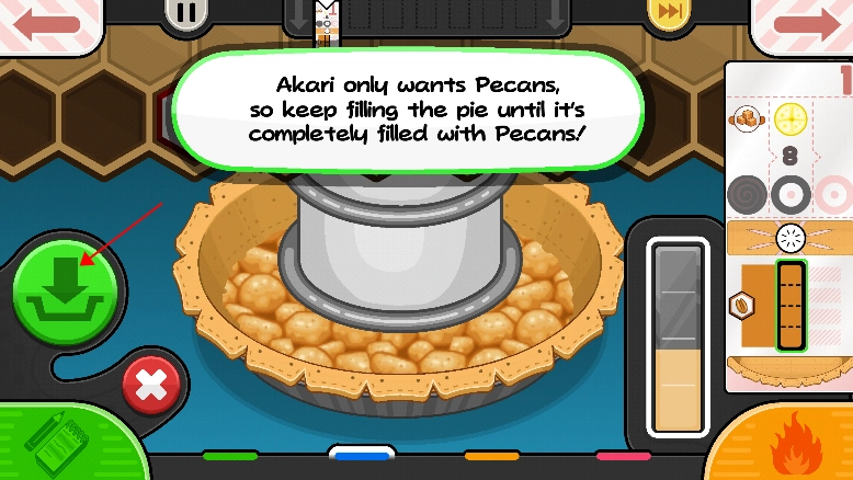 8、左右拖动上方的格子可以选择水果,将需要的水果对准木盆中间。