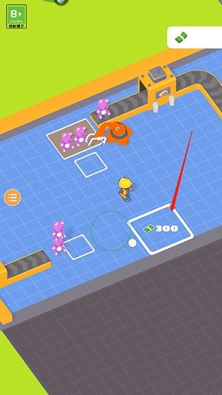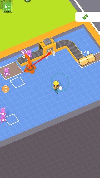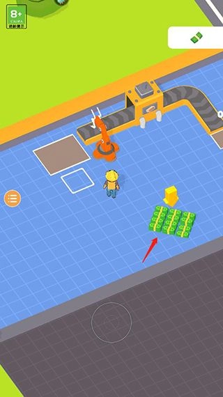 1、打开异星工厂手机版游戏,通过滑动屏幕操控角色去领取钞票。