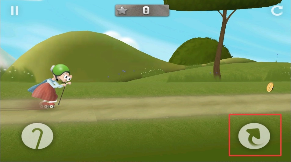 1、通过点击屏幕右侧加速按钮提升老奶奶移动速度,快速穿越街道,同时注意控制节奏避免失控。