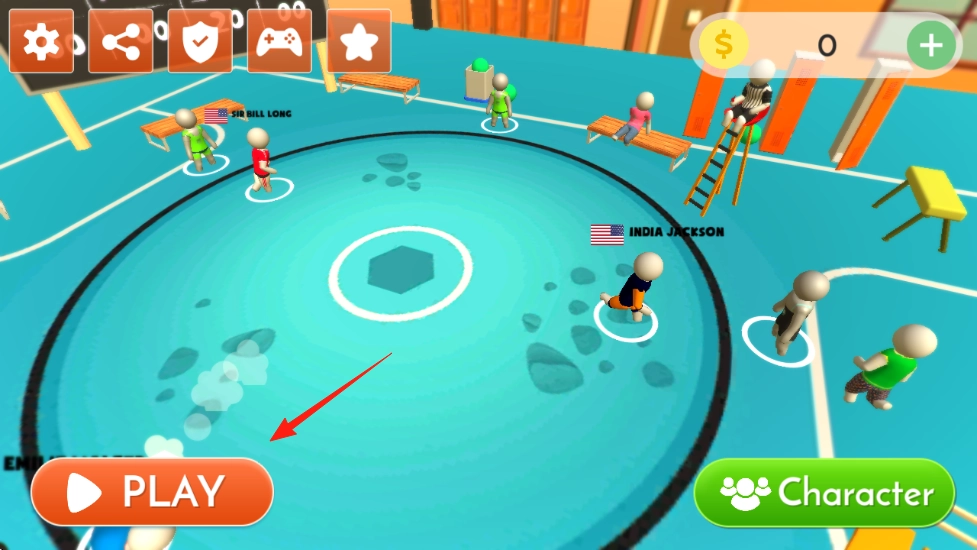 3、场景互动利用不同场地(球场、花园、船舱),规划战术,躲避对手,积累金币($)解锁角色、皮肤,提升竞技体验。