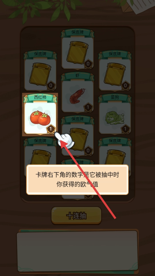 1、每次十连抽都会获得随机卡牌,欧气值决定你能活多久。