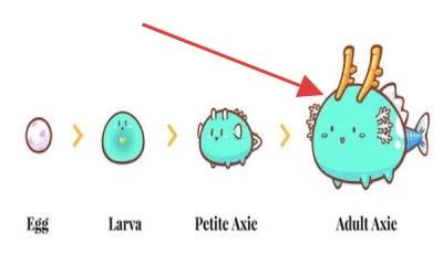 2、进行“形态养成”!依次经历幼虫(Larva)、幼体(Petite Axie)等成长阶段,分2次推动升级,确保养成过程连贯,不要出现断档情况。
