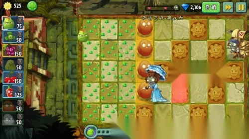 在这款小游戏里,失落之城地图的特殊地形——陷阱瓷砖会出现。要是有植物种在陷阱瓷砖上,或者僵尸踩到了陷阱瓷砖,若是火焰瓷砖,那么该瓷砖所处的那一行就会燃起火焰,把该行所有的植物和僵尸都消灭;要是巨石瓷砖,就会从上方落下一颗巨石,将该瓷砖所在列以及其左边与右边各一列范围内的所有植物和僵尸击飞。机关触发后,瓷砖会凹陷一阵子,之后便恢复原状。