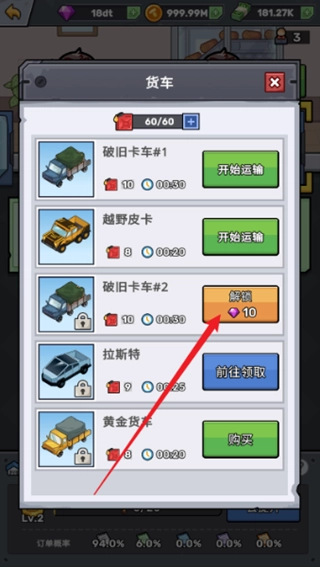4. 若要完成运输任务,你能够选用货车。只要在规定时间内达成任务,便能解锁下一辆货车。