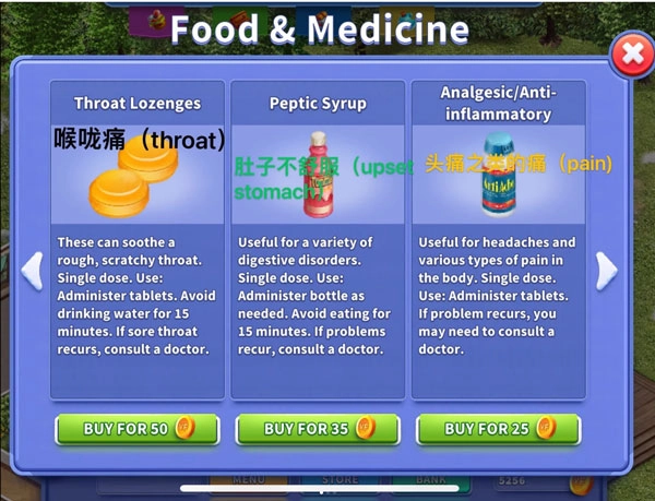 2、肚子不舒服(upset stomach):服用Peptic Syrup(助消化糖浆)