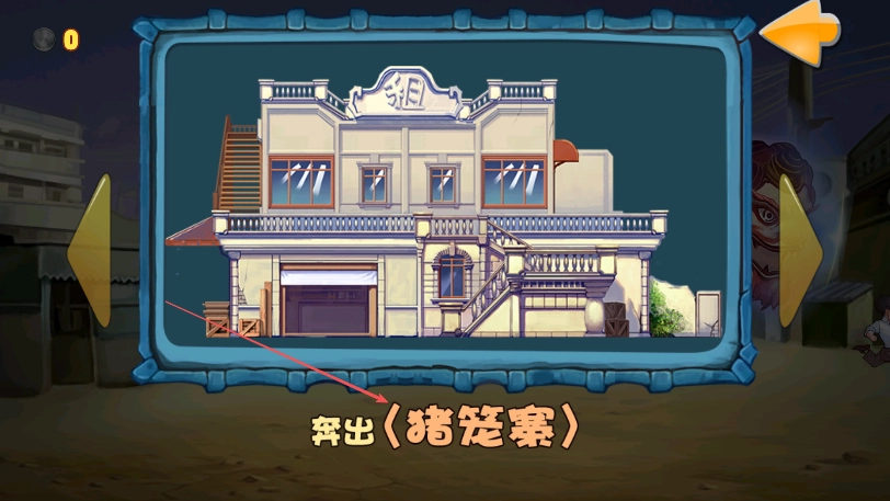 1. 在游戏开始界面,点击标有“奔出猪笼寨”字样的地方,即可进入游戏关卡。