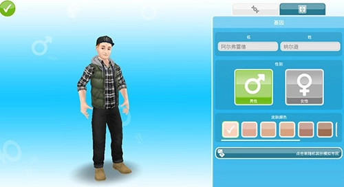 点击空房子来增添新的模拟市民。你能够对模拟市民的肤色、性别、外貌等进行设置,待确定好该市民的外观后,在界面左上角会看到一个绿色的钩,点击此钩后会弹出对话框,上面询问“添加某某人到成长?”,这时点击“是”即可。