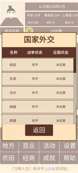 1、于指尖开启丰富人生之旅,从一介平民起步,逐步提升自己的官位。