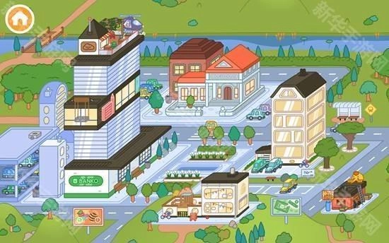 1、踏入游戏,映入眼帘的首先是自己所处的街道。其中最高的大楼为商业用楼,楼内设有众多办公室。往远处看能瞧见学校,近处则是自己的家。在右侧,还有一栋居民楼以及修理厂等建筑。