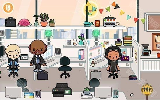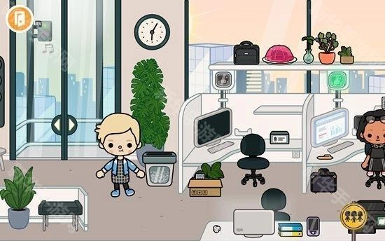 2、随意点击一座大楼,就能进入其中。比如选择商业用楼,进入后会发现里面是一间办公室,能看到许多办公用品,还有不少正在工作的人员。