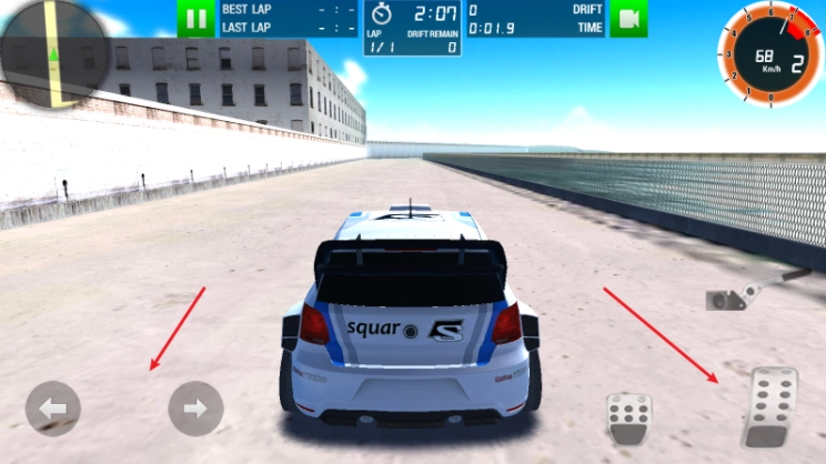 3、在赛车过程里,能够借助右侧的手刹来实现减速。
