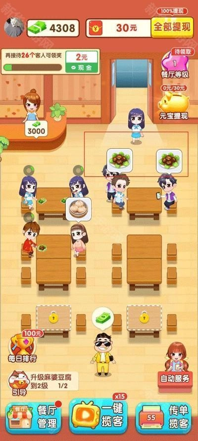 4、若想提升餐厅等级,每成功晋升一级,即可获得红包。当满足特定条件时,这些红包便可提现。