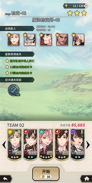 5、第一步,挑选章节关卡,第二步,选择即将出战的角色。