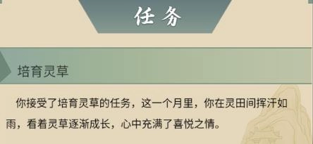 1. 进入任务界面,点击首个任务“培育灵草”,持续接受该任务,直至游戏时间来到第四年,领取剧情奖励。(可在任务详情界面或设置里关闭任务详情显示,以加快任务完成进度)