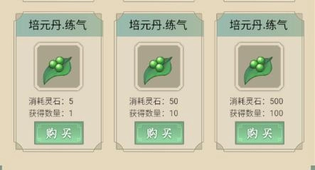 7、在探索三次迷魂林之后,前往职位界面领取俸禄,接着将所有灵石都用于购买培元丹和筑基材料,并在人物界面全部使用完毕。