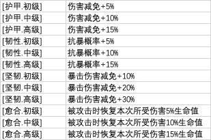 装备防御类特性: