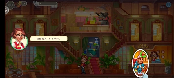1. 进入之后,在首个关卡里,玩家要协助两位客人办理入住手续。