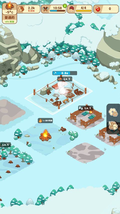 低温威胁如影随形,你务必时刻留意部落成员的体温情况,搭建足够暖和的住所,防止他们冻伤甚至失去生命。