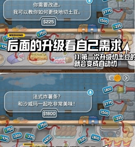 ⭐烤肉管、卷饼皮、包装机、削土豆三个同时升级,攒够钱能升哪个升哪个
