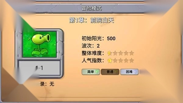 2、点击冒险模式后可以选择想要游玩的关卡和难度。