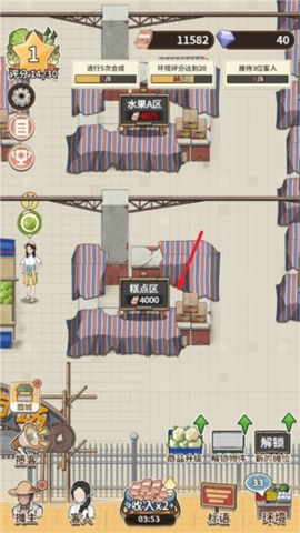 6、持续进行经营活动,提高环境评分与摊位等级,以此增加收入并解锁更多功能。