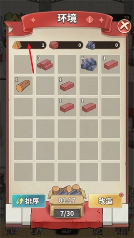 1第一步,先点击游戏右下角的“环境”按钮,进入环境界面后,耗费体力采集木材等材料。